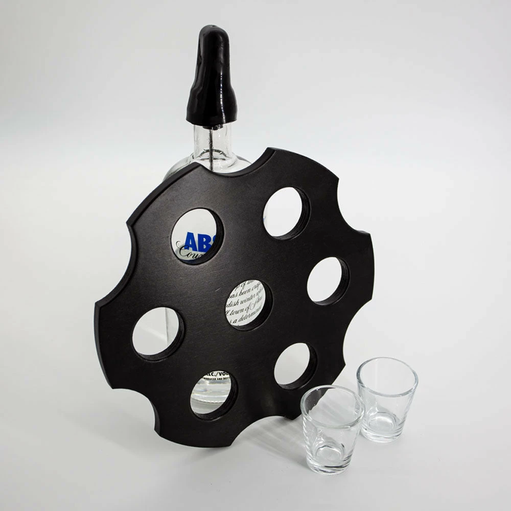 We recommend our stylish BARCONIC® 1oz BARREL SHOT GLASS (not included) as the perfect addition to the 6-Shooter Shot Glass Caddy!