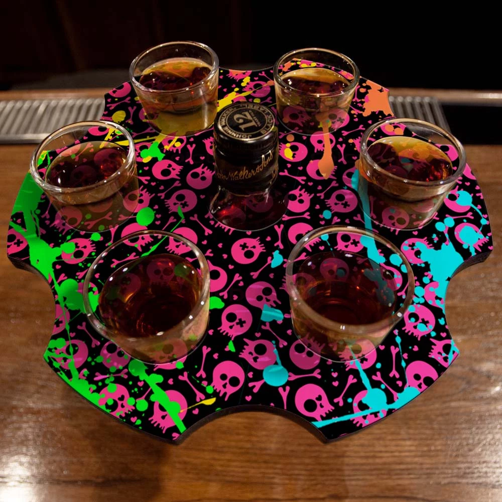 Take a shot from this Skulls and Splats Design 6-Shooter Flight Tray! It’s a perfect addition to your festive party-themed event or just an easy way to add a little extra style and flash when serving drinks.
