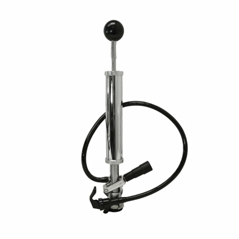 The D Systems (American Sankey) is considered the most versatile and abundant valve available. Major American breweries, such as Anheuser-Busch and Miller use D system valves. Therefore, this 8″ Cylinder Hand Pump with Lever Handle and Faucet/Hose is your best choice for tapping your keg at parties, events, barbecues and more! Fabricated with a forged brass base and chrome plated air pump. The base has been rendered in a tin-nickel plate to reduce the risk of corrosion in all environments. It also features an 8″ long stroke plastic faucet with squeeze trigger.