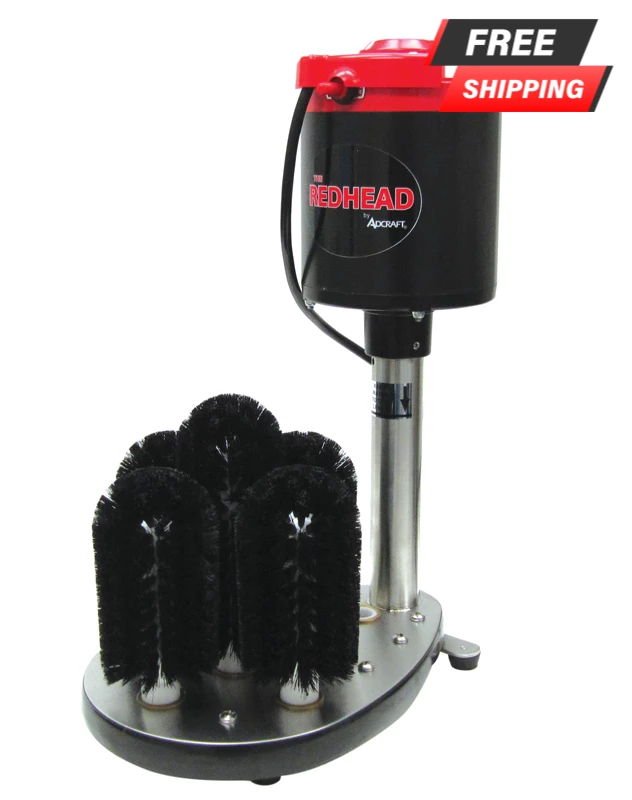 The Redhead Upright Electric Glass Washer is manufactured by Admiral Craft Equipment Corporation which is a worldwide leader of equipment for the food service industry. This heavy duty glass washer even removes tough stains like lipstick in only seconds. It features an 8 3/4″ brush in the middle that cleans the inside of the glass, while the other four 7″ brushes clean the outside of the glass. It is a breeze to install in your sink, and requires no additional plumbing. Bartenders and bar backs will love how quick and efficient this glass washer is to operate. Quality performance, durability, and price make this a top choice for any food service operation.