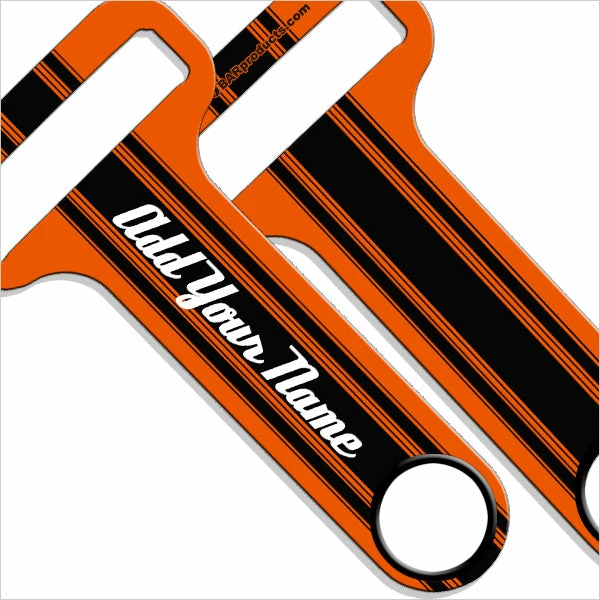 The HAMMERHEAD™ Bottle Opener is the ultimate manly bottle opener! It is designed to open 2 bottle of beer at the very same time. The racing stripes design is perfect for motorcycle or car lovers! Plus, you can add your name or any text you would like to this unique bottle opener and make it your own. All you have to do is type the text you wish to have printed, and our designers will make sure that it turns out just right. It’s simple, easy, and takes only minutes to customize!