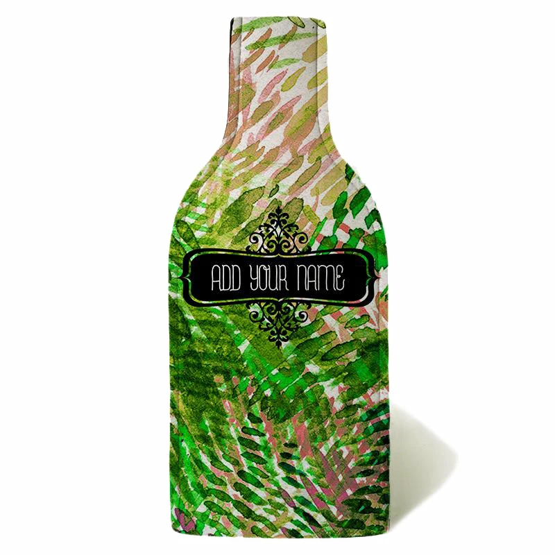 Coolers are no longer just for beer bottles and cans! Now you can enjoy your favorite vintage in this green and pink watercolor bottle cooler. You can add a name to the design to make a more personal gift or get one for yourself with your own name printed right on the front. The cooler fits standard shape 750ml wine bottle sizes and is easy to handle. This wine bottle cooler makes a great gift for any wine lover and comes equip with a strap for easy transportation. The strap is easily removed to enjoy our unique printed designs.