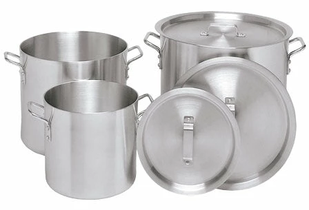 These Aluminum Stock Pots are heavey duty and constructed for Commercial use featuring a 4mm thickness. The sanitary open bead and uniform thickness throughout pot entirety enables even cooking. These pots are offered from 10 qt. sizes all the way up to 100qt. Any size for any event. Lids (APTC) are sold separately.