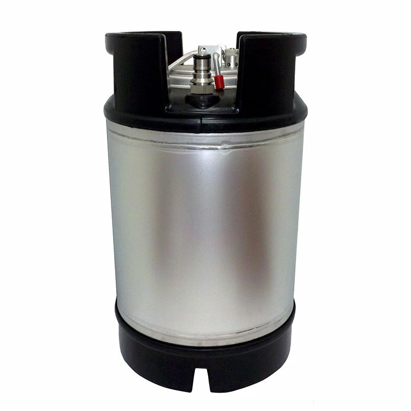 Built for all of your home brewed crafts! Kegs are a great option for your beverage storage because they are pressurized and they eliminate the exposure to oxygen. This AMCYL brand is made of high quality (304) stainless steel and is NSF approved. The pressure relief is built right into the lid for easy depressurization and uses ball lock quick disconnects… safely venting at 130 psi. It also features a protective rubber boot bottom as well as dual rubber handles for convenient draining and handling. This 2.5 gallon capacity version is lightweight and measures 8.5” in diameter by 14.75” tall.