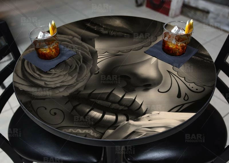 The Amor Eterno Round Table Top features the beautiful art of Daniel Esparza, one of many Featured Artists here on BarProducts.com. Click here to see more Featured Artists.