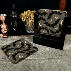 Wooden Coasters – Halloween Bat Design – Set Of 4 W/ Coaster Caddy