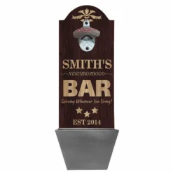 Custom Wall Mounted Wood Plaque Bottle Opener And Cap Catcher – Family Brewery