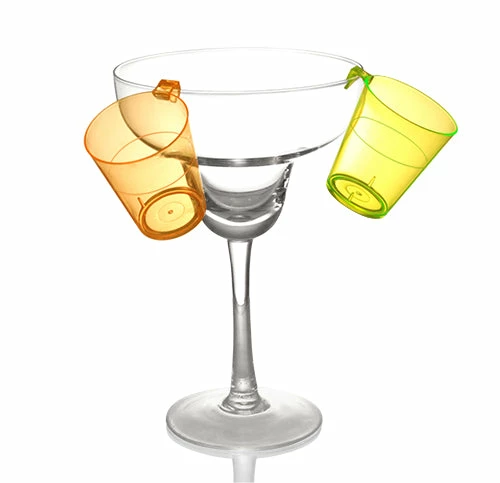There never seems to be enough room on cocktail trays, especially when it is a big table ordering a round of shots. We have the solution. Shot cups with hooks on them, this way you can get twice as many shots out to your customers at once.
