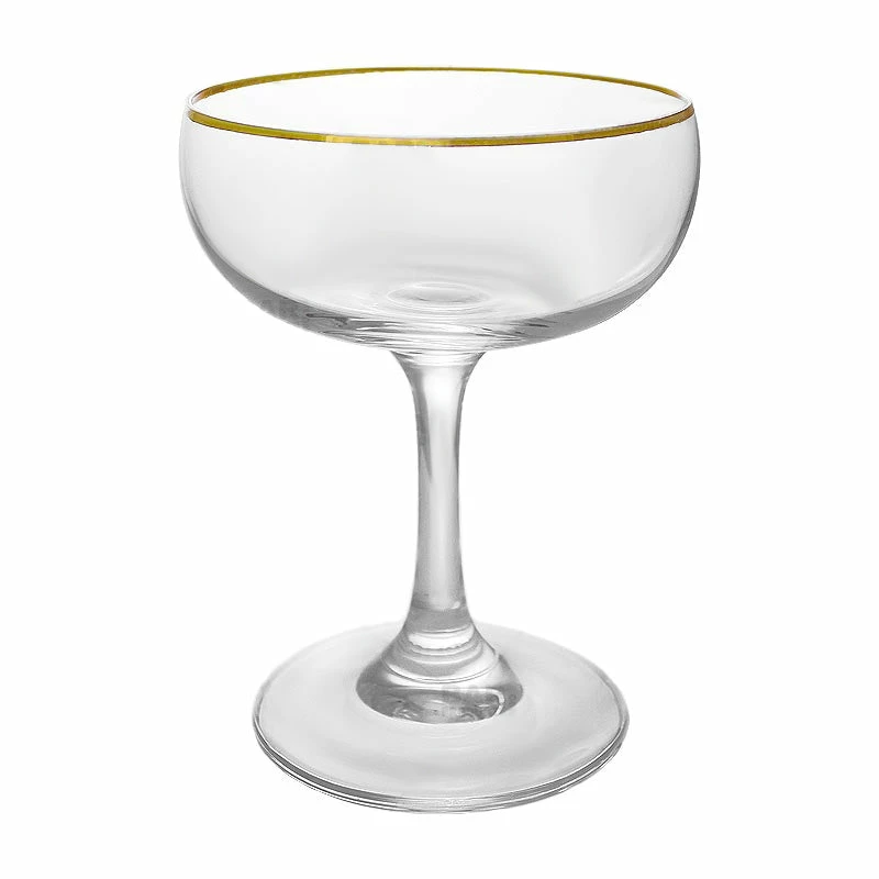 Here’s another great glass from the BarConic® glassware line, exclusive to BarProducts.com. This Coupe Glass, also known as Champagne Coupe, Champagne Saucer or Cocktail Coupe, has a dazzling gold rim around the top of the glass.It’s perfect for serving up champagne, cocktail drinks, or even appetizers.