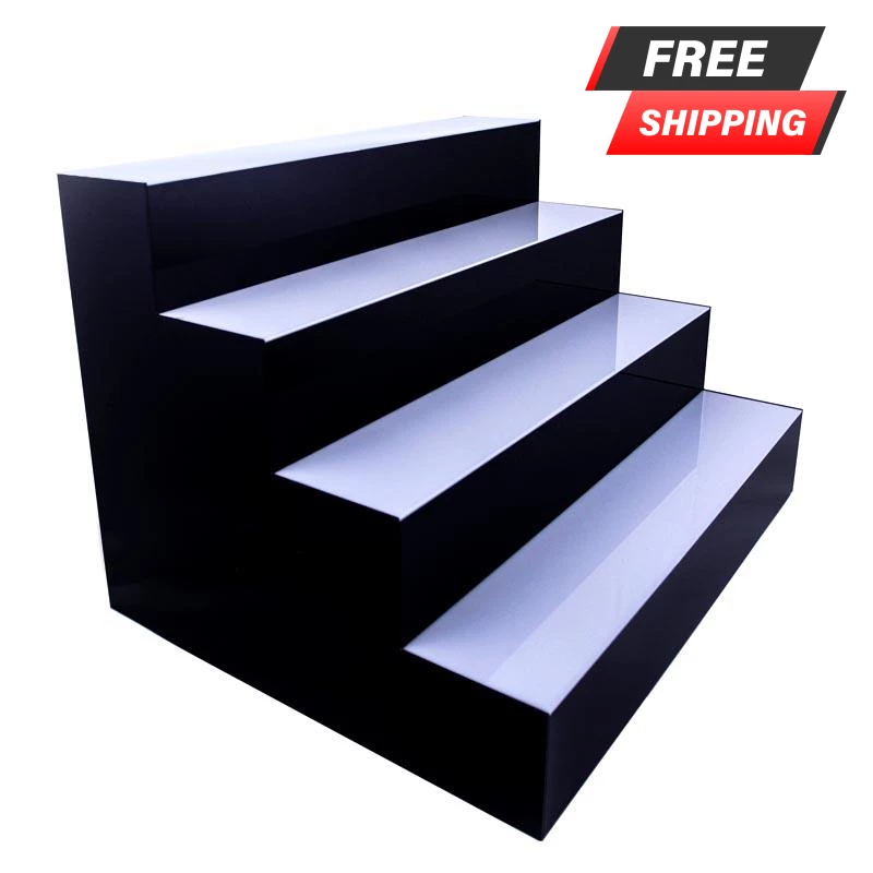 BarConic® LED acrylic liquor bottle display 4 tier shelves are a great way to showcase your different types of liquor brands. It grabs the attention of your guests while creating a fun ambiance to your bar. The shelves come with a handy wireless remote control that will allow you to create an unlimited range of color choices and create the right mood for any atmosphere. The design of this shelf plus the long lasting LEDs and durable acrylic construction make this shelf a must-have for your bar. Standard 12 volt UL Approved Power. Choose the size that’s right for your bar, we have 18” to 36” long shelves.
