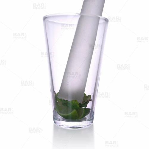 The BarConic® Clear Acrylic Muddler with LED lights is the perfect way to “light up the night” of a dark bar or nightclub! This large acrylic muddler is a true showpiece- lighting up and strobing eight different colors when used. The smart design has the muddler light up when held upright and in use and automatically turns off when lying flat. The heavy muddler measures 30 cm (or 12″) and weighs 9 oz, making for a large showpiece in any setting. The clear acrylic is frosted and includes a tenderizer head for muddling fruit or mint.