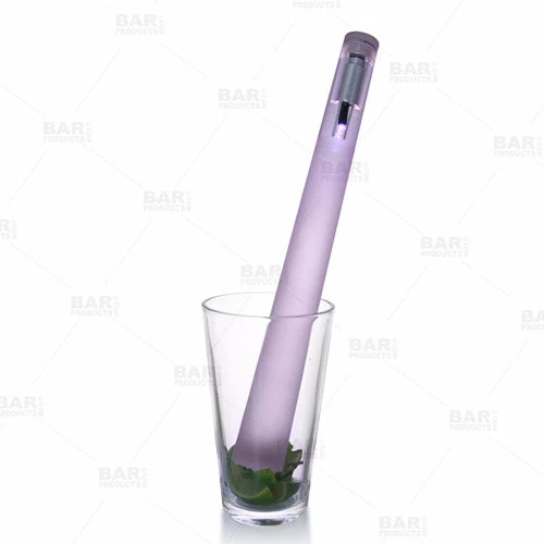 The BarConic® Clear Acrylic Muddler with LED is part of the BarConic® Light Up series of plastic drinkware that fades through five different lighting modes: red, blue, green, pink and purple. Batteries are not included with purchase – the muddler requires 3 “LR44” batteries.