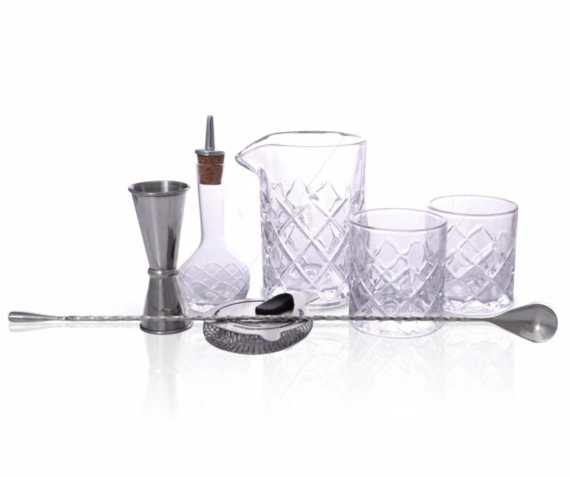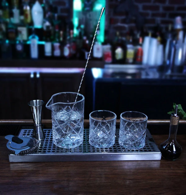 Mix all your favorite cocktails in style with this elegant Bar Set! The BarConic® Diamond Bar Kit with 13oz Mixing Glass Set is a top-notch set at a price that can’t be beat! This set features our diamond pattern glassware and high quality stainless steel bar tools. It is even stylish enough to display on the bar all the time. This set will make a great gift for any bartender or cocktail lover.