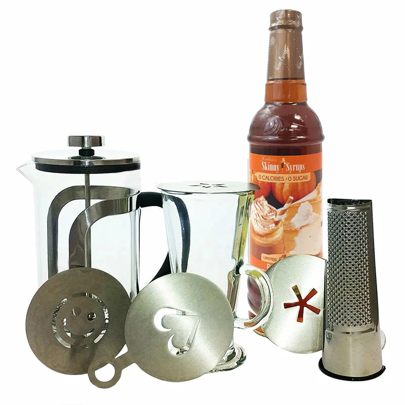 We are excited to bring you this custom “Fall” Kit from BarConic®! Included are some of the best bartending tools and supplies to aid you in creating that perfect cocktail not only with robust and soothing autumn flavors, but also a unique presentation. Beginning with the deliciously pumpkin cheesecake syrup, we have also added 2 gorgeous Cafe Glasses, a Cocktail Press, Nutmeg Grater and to top it off… a 4 pack of fun Cocktail Stencils. This kit is sure to inspire some amazing cocktail treats allowing you to get creative for years to come.