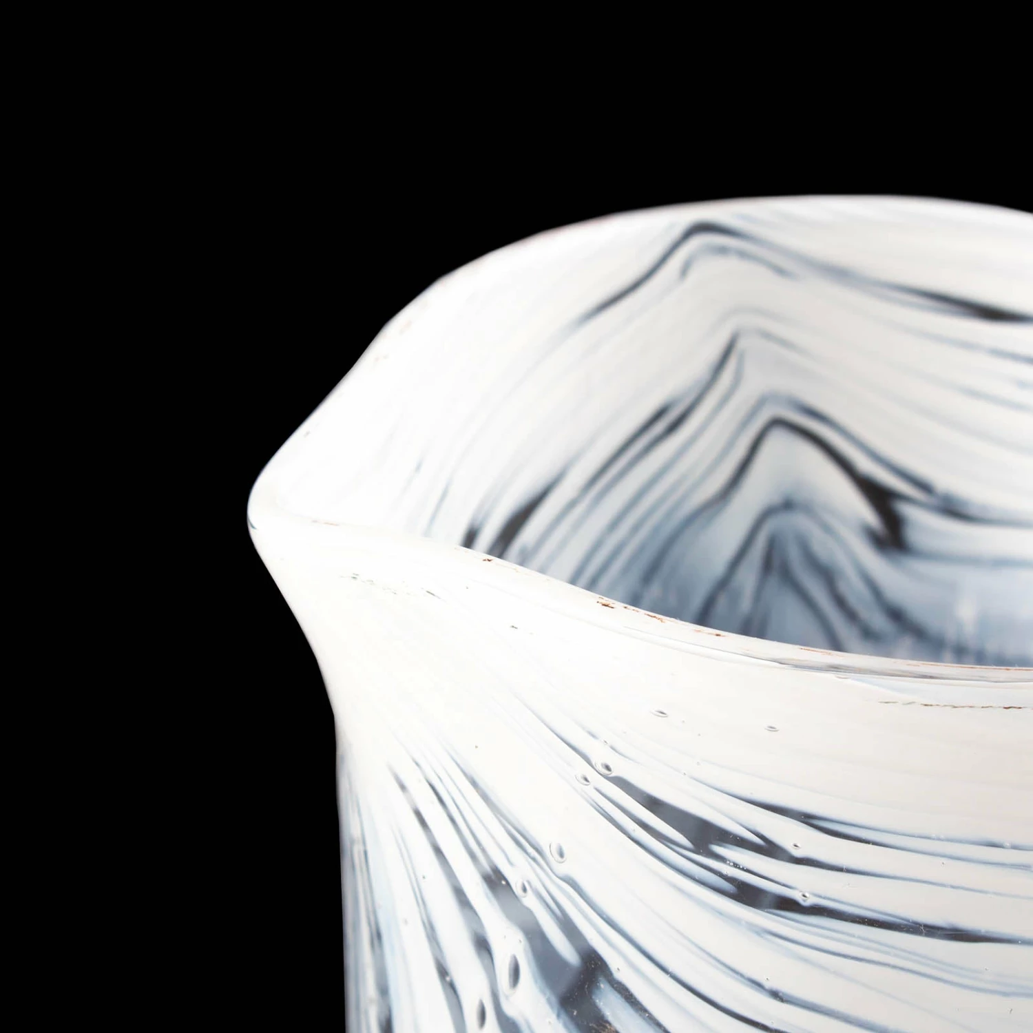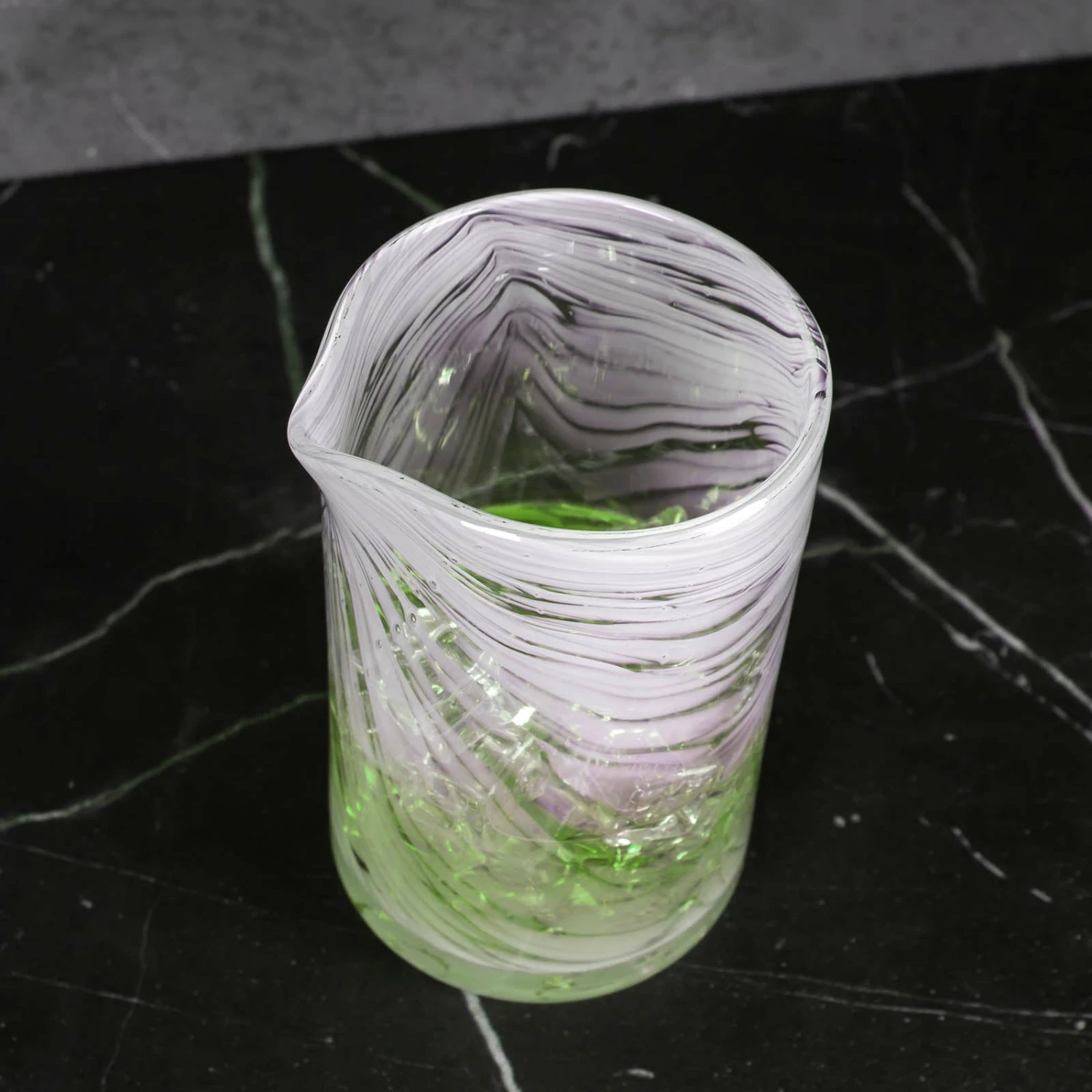 Grace your bar with this beautiful BarConic®’s Hibiscus Mixing Glass. It features an intricate white and clear wavy pattern and adds a sophisticated touch to any cocktail hour. Craft your perfect drink in this sophisticatedly designed mixing glass. Perfect for a true mixology aficionado. Measures 5.75″ tall with a rim diameter of 3.25″. Has a liquid capacity of 22 ounces.