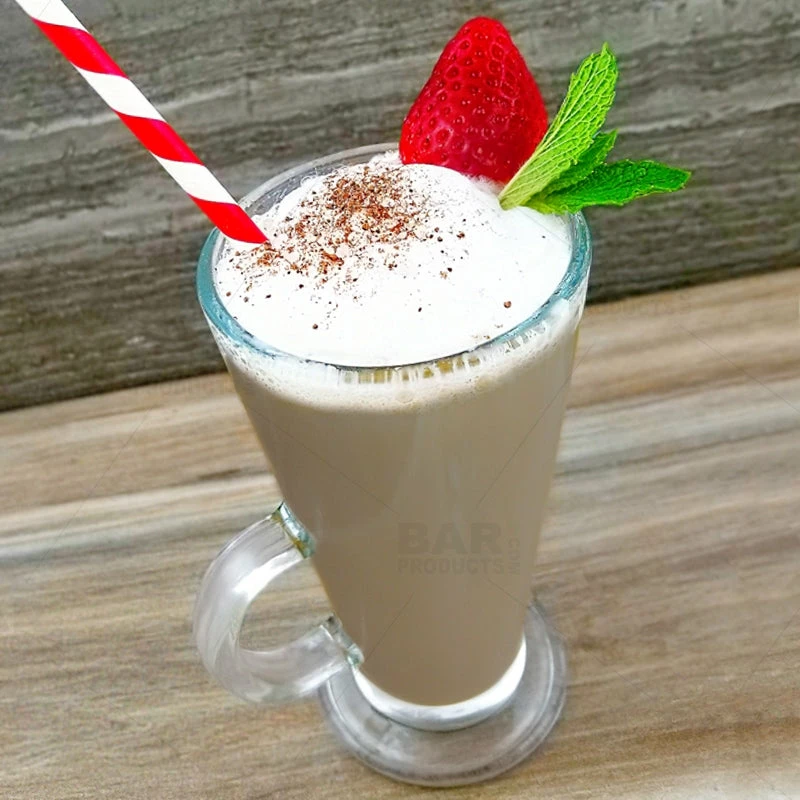 The 9 Ounce BarConic® Cafe Glass has a tall wide-rimmed design and creates a stunning presentation when topped off with whipped cream or other flavored foam toppings. But, don’t add too much, save some flavor for the Fee Brother Irish Cream Cordial Syrup. It is smooth and creamy and sure to add a delicious touch to your cocktails. Top off your creative spirit with a Red Stripe Paper Straw to add that vibrant color. Our BarConic® Paper Straws are made of biodegradable eco-friendly materials and safe for you and the environment!