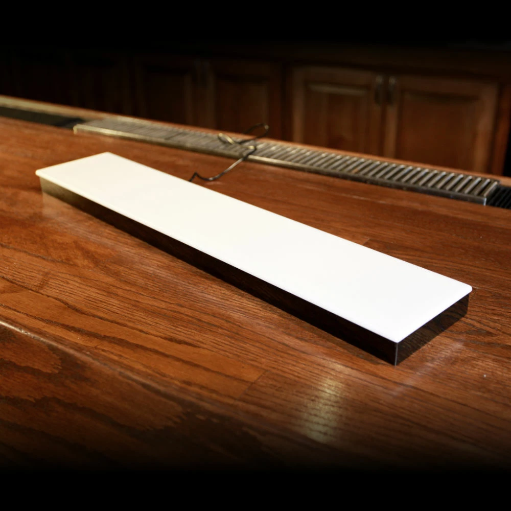 We use a thick 6mm acrylic for a more durable, long-lasting shelf that can take years of wear and tear. We also use acrylic with a milky white translucency throughout the material, instead of just a frosted surface. It allows for more even and consistent light diffusion from our high-quality LEDs.