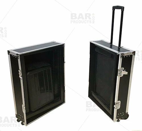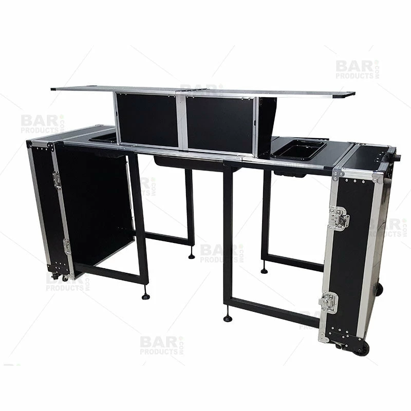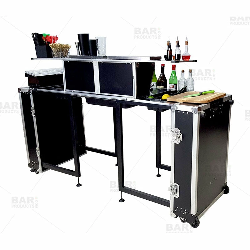 If you are a traveling mixologist who wishes to maintain your own bar set up, then this BarConic® Portable Bar is perfect for your bar services. We have taken the time to speak with many professionals in the mobile bartending business and have been able to successfully upgrade our design to the perfect traveling bar. Tote your business around town with ease as this bar folds into a standard suitcase size tote, complete with wheels and retractable handles. You will be amazed at the ease, features and durability this bar offers when opened up.