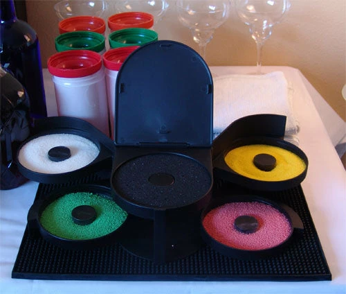 New, handy, space-saving, and just plain cool, this FIVE Tier Salt/Sugar Rimmer will be the pride of your bar! Perfect for those master mixologists who are just as picky about salt and sugar flavors as the customers who enjoy the colorful and tasty differences. All compartments compact easily in one storage column that is easy to keep and easy to clean.