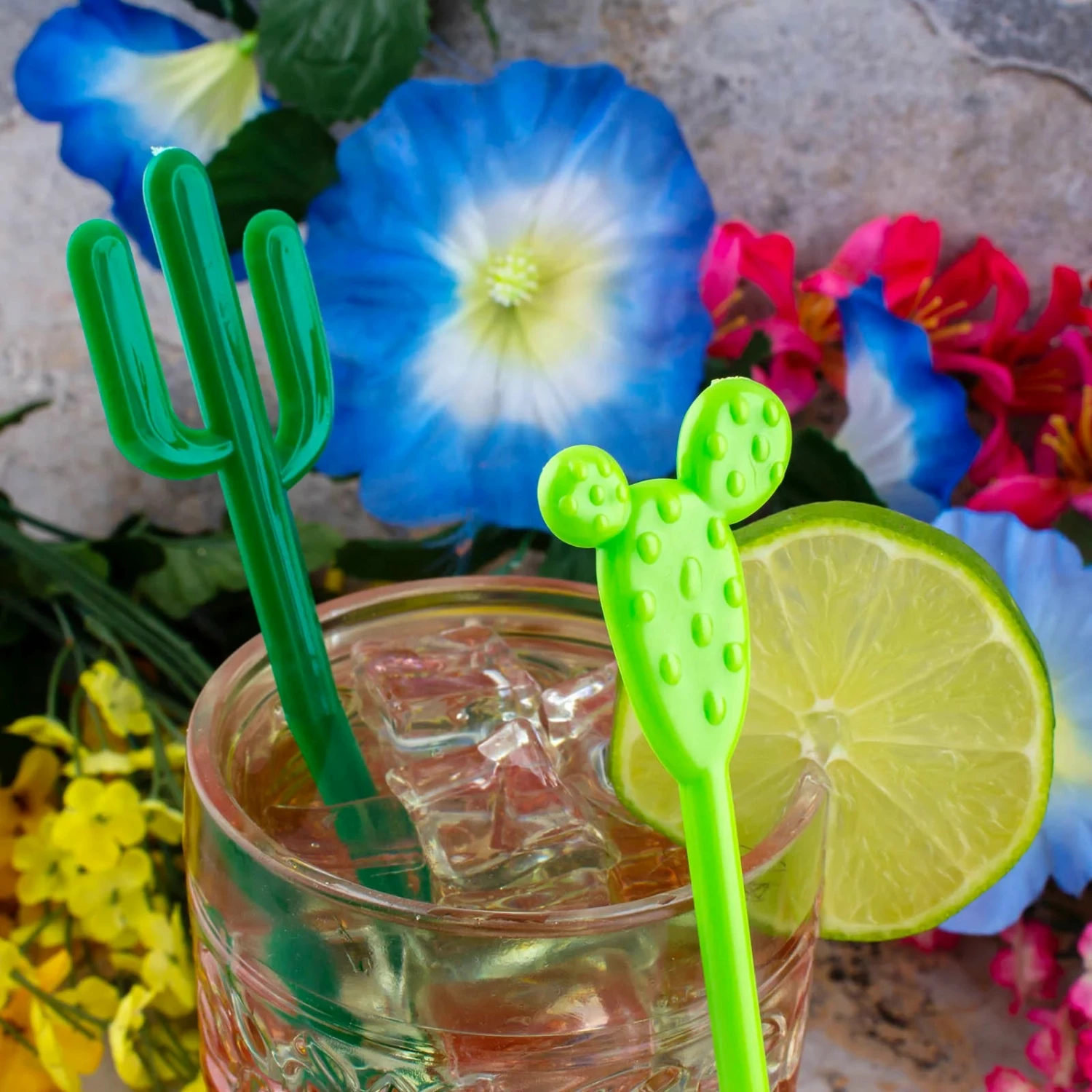 Check out these cool BarConic® Swizzle stick stirrers! They add just the right amount of fun to any cocktail. They fit in perfectly with any beach or western theme, becoming a great accessory for all of your summer time drinks and tropical cocktails. These packs of 100 drink stirrers comes in 2 different designs and three colors, giving you a bunch of options for all of your entertaining needs. The festive look of these drink stir sticks are great for adding some extra personality to all of your favorite drinks.