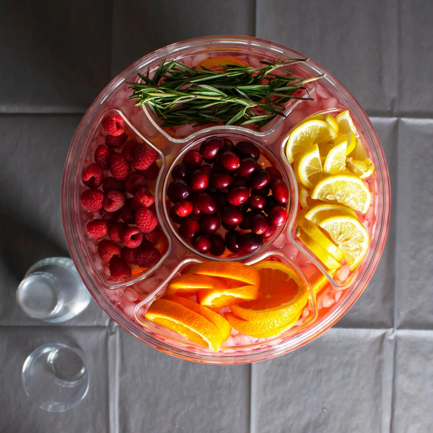 This 3.5 gallon BPA free acrylic beverage dispenser is a great and modern way to serve drinks at your next event! The dispenser is perfect for any beverages such as: punch, tea, or even a cocktail mixture. It comes with a removable lid that also serves as a garnish server. Has a built in strainer by the spout to ensure easy no clog dispensing. The large lever spigot is made of a heavy duty chrome plated metal. Has a built in ice reservoir underneath the beverage to provide additional cooling.