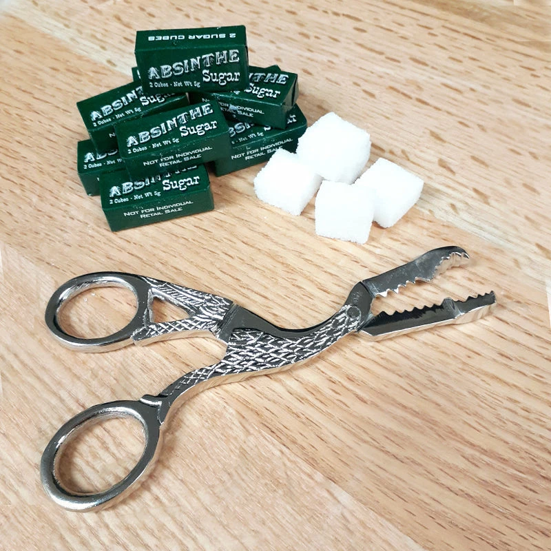 Stunning style serving absinthe sugar cubes, also use for dispensing ice cubes. These pewter-plated bird shaped tongs have a true antique look, measuring 5″ in length. Note that these tongs are made to only open wide enough to grab and hold a sugar or ice cube. Use for absinthe cocktails, coffee or tea. Show your customers and guests “You’re a touch above the rest with unique presentation.”