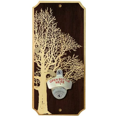 These simple yet elegant wall mounted wood openers are the perfect addition to any home, home bar or restaurant. The simple bird graphics mixed with the dark wood background make this opener fit with most decor and will look great behind the bar or in your home. This opener is not only a quality hand crafted product, but with this design it is sure to add some style to your establishment.