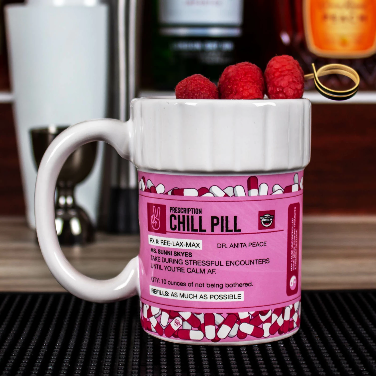 Soothe your worries with the Chill Pill Mug! Made of ceramic, this 10oz tiki cocktail mug is perfect for enjoying a refreshing beverage as you take a minute to relax. Beat the heat and take the edge off with a cool drink – it’s the prescription for a happy day! Measures 4.25″ tall with a rim diameter of 3.25″. This product is recommended to be hand washed only.