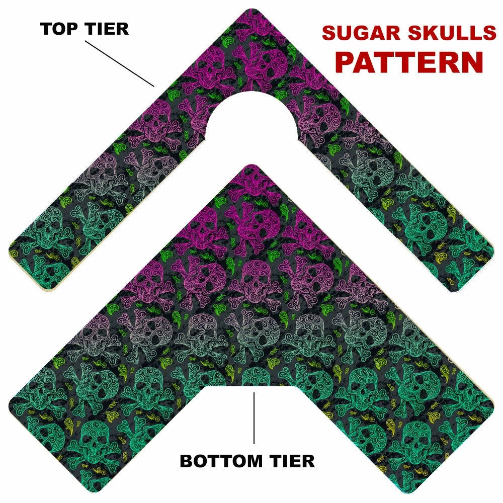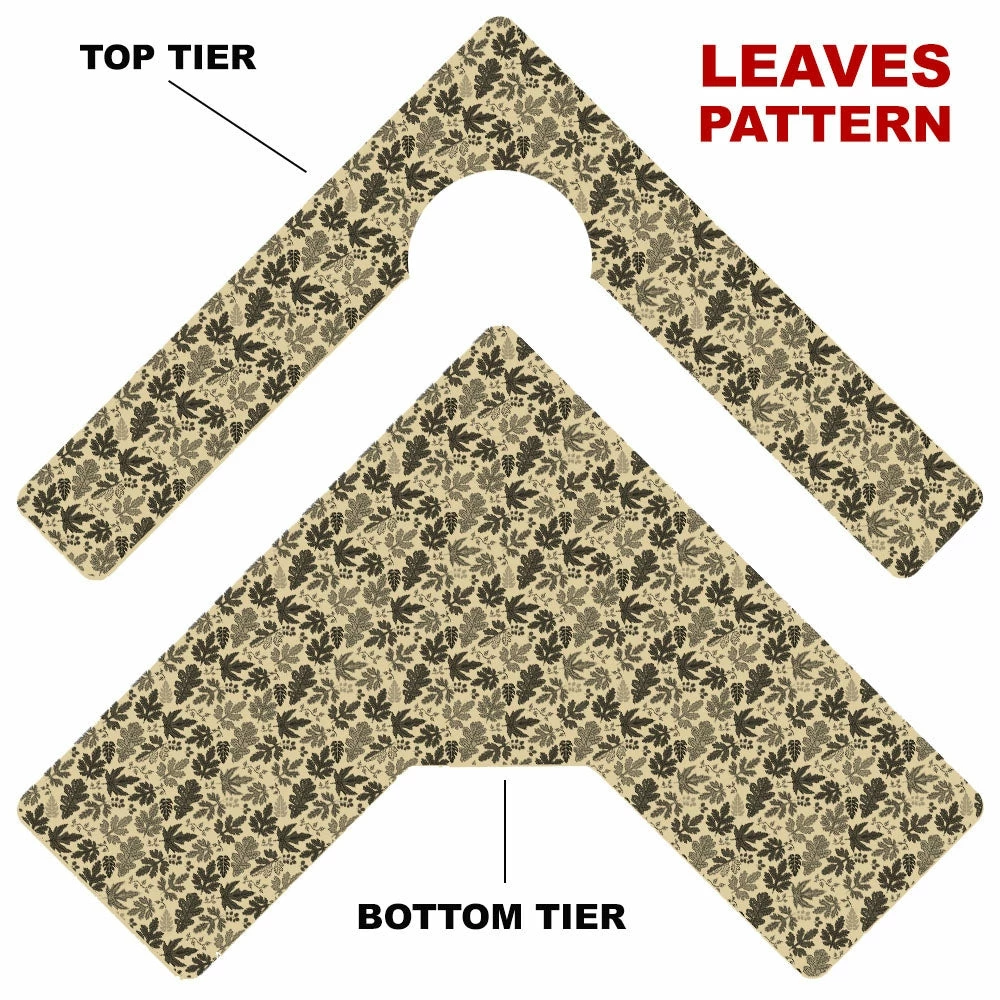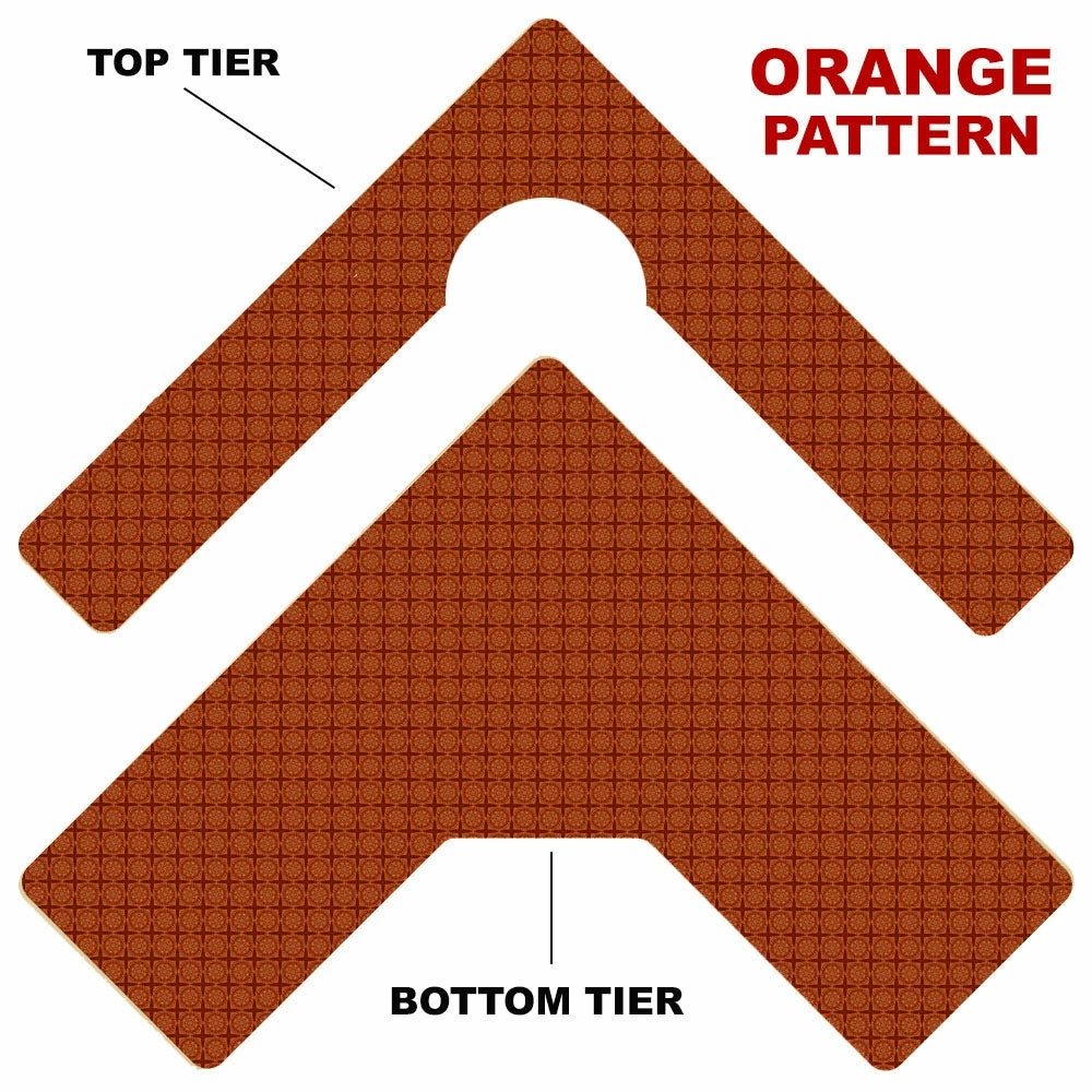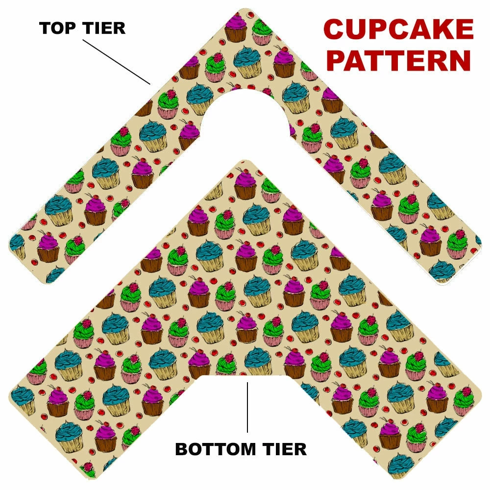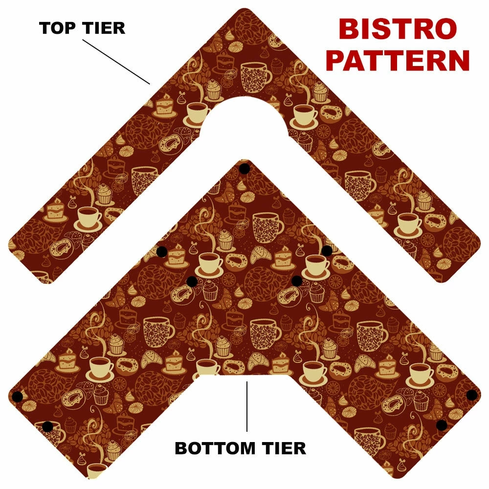 Here is a simple way to choose your Counter Caddy design from several pattern templates. Have the ability to match up your kitchen theme simply by choosing from our wide selection! You also have the ability to choose the height of your unit. The Dowel Rods are available in 3.5″, 5,75″ and 7.5″ heights elevating your second tier to preferred under cabinet heights. The top tier features a half circle cutout that you can conveniently slide up to a 4.5″ diameter trash can into.