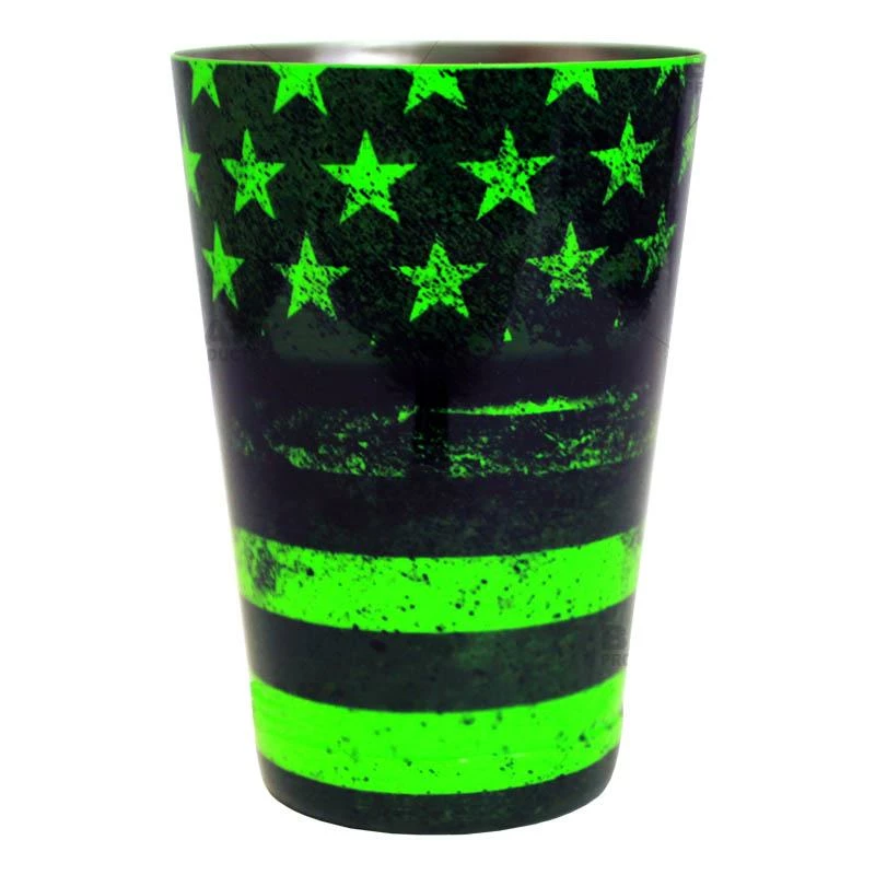 Cocktail Shaker Tin – Printed Designer Series – 18oz Weighted – NEON GREEN U.S. Flag