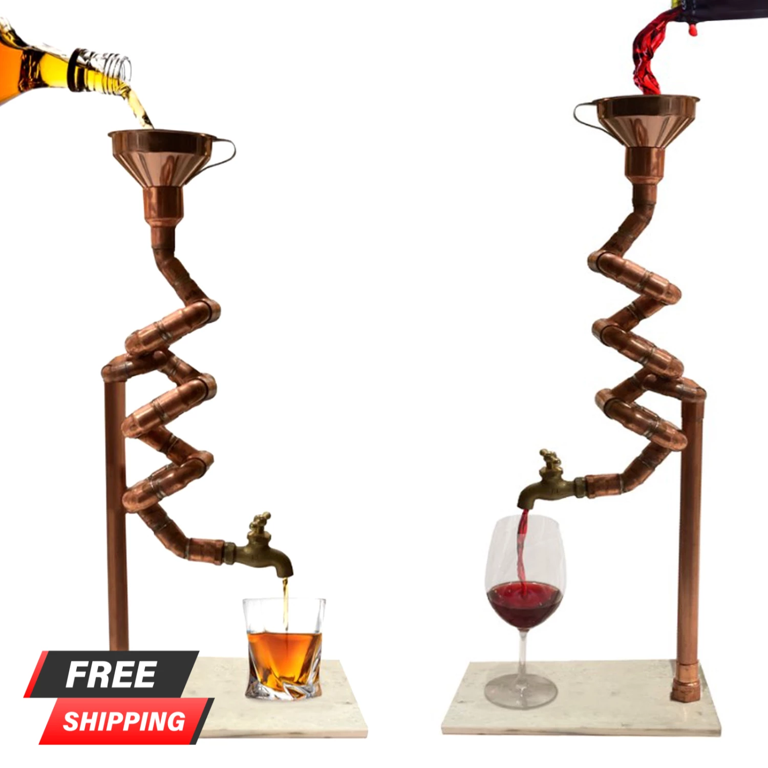 The Collide Refining Tower is a table-top copper filtration system that makes wine and spirits taste so smooth you would consider them “top shelf” because of the exceptional finish. And it’s much more than that, it makes for some fun entertainment too. It works by pouring Alcohol or Water into the top funnel/filter. Gravity will cause it to flow to the bottom spigot as it passes through the “Patent Pending” copper filtration device. The result creates an incredibly smooth pleasant finish. The copper alloy is made with an EPA-registered antimicrobial material proven to continuously kill 99.9% of harmful bacteria. The copper alloy never loses its ability to kill harmful germs, even between cleanings. Measures 16½ H x 4¾ W x 6½ Deep.