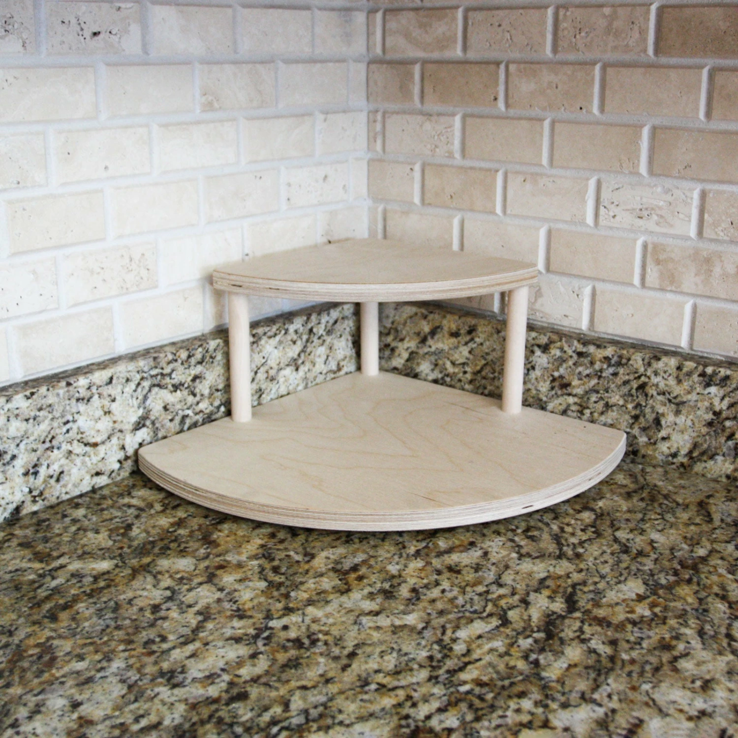 These 2-tier shelves are designed to fit perfectly underneath your kitchen cabinets, while still being able to easily access common spices and ingredients. They are handcrafted in the USA, right here in our very own bar products woodshop. Our counter caddy shelves are constructed from durable baltic birch wood, with 3 secure 5.75″ dowel rods. The smooth finish is easy to clean and each shelf is sold with rubber feet on the bottom, giving the bottom shelf a bit of space from your counter to help protect it from scratches and bacteria build-up.