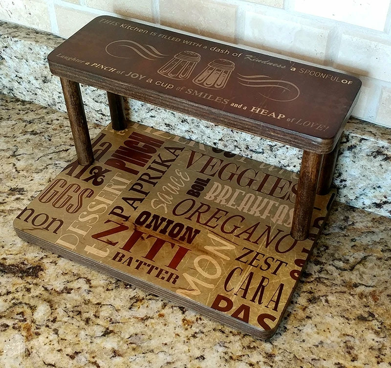 Our trademarked Counter Caddies™ in “CULINARY” themed artwork is designed to accommodate the chef who favors organization in their kitchen. Set up your spices, ingredients, and other culinary tools in a convenient location on your kitchen counter with style. Our stained counter caddy makes it quick and easy to cook up a storm!