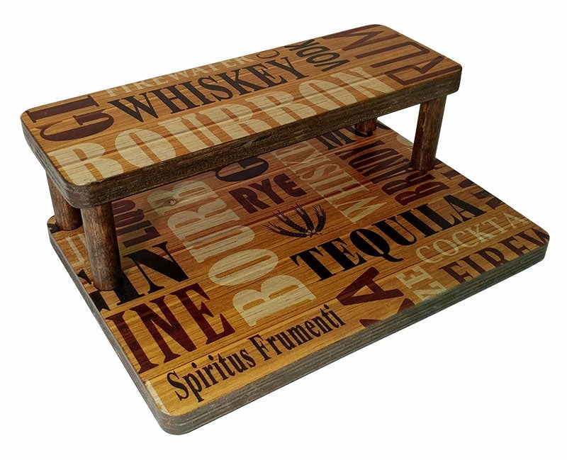 Our trademarked Counter Caddies™ in “LIQUOR” themed artwork is designed to accommodate the home bar enthusiast who has limited bar space. Set up your home bar area in a convenient location on your kitchen counter. These shelves look fantastic displaying your favorite liquor brands as well as the bar tools needed to concoct your amazing signature cocktails. Set them up however you like and have quick and easy access when it’s time to entertain friends, family, and guests!