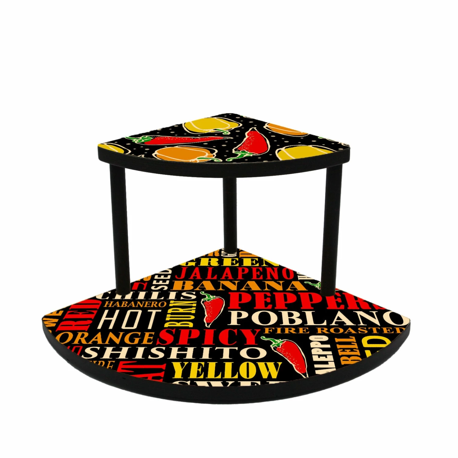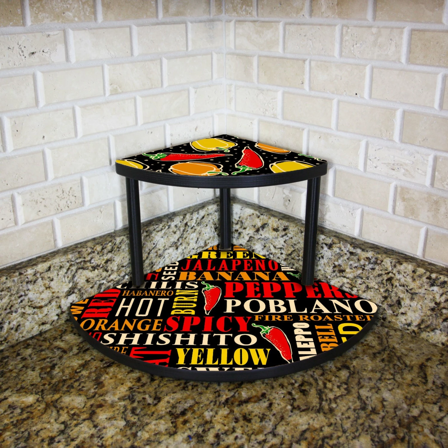 Our trademarked Counter Caddies™ in “Pepper” themed artwork is designed to accommodate the chef who favors organization in their kitchen. Set up your spices, ingredients, and other culinary tools in a convenient location on your kitchen counter with style. Our stained counter caddy makes it quick and easy to cook up a storm!