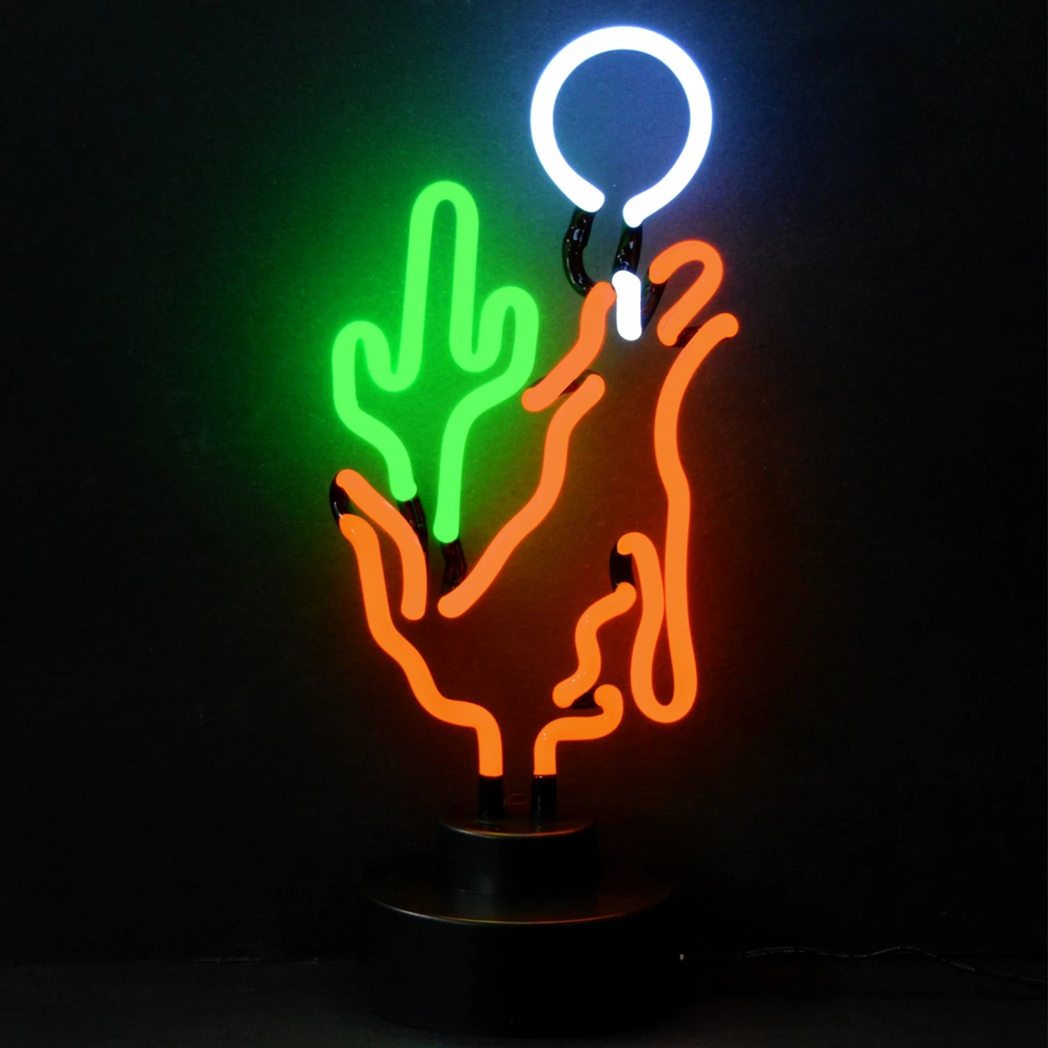 This bar sign is a fun addition to any Man Cave, home bar, or garage. The Coyote NEON Sculpture features multi-colored hand blown neon tubing. It plugs into a black base, which fully houses all the electronics. The base has an on and off switch, and can be adapted to sit on a shelf or hang on a wall. Neonetics neon sculptures have a warm mesmerizing glow, and are powered by solid state transformers, which operate silently and more efficiently than incandescent bulbs. All you do is plug it in – no special wiring required.