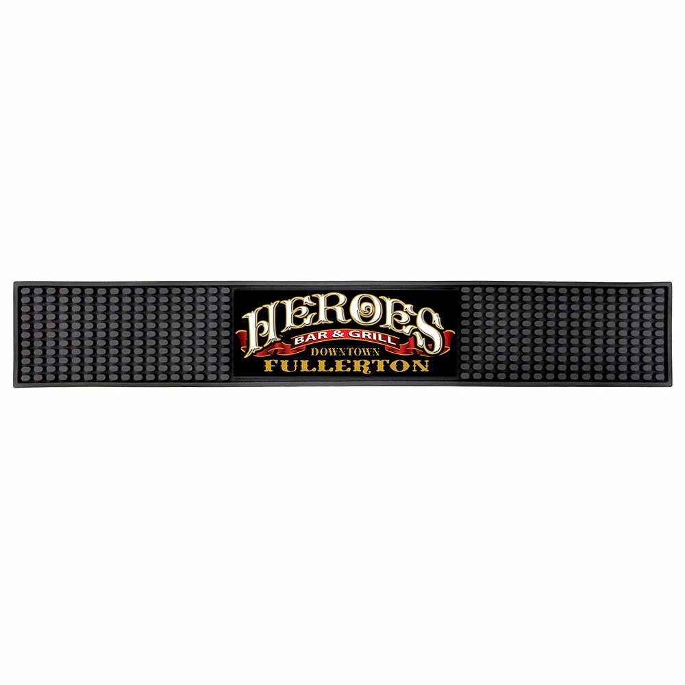 Looking for a high quality reusable bar mat that is customizable? This Rubber Bar Mat is an excellent option! Measuring 22.75″ in length, this rubber mat is designed for high volume bars. The embedded knobs are perfect for collecting any sort of condensation or spillage, keeping your bar service area dry and clean. Perfect for bars, restaurants and even the home bar enthusiasts. It features a neoprene inner rectangular area that is full color customizable! Upload any logo or designs and have yourself a beautifully branded, high quality service mat.