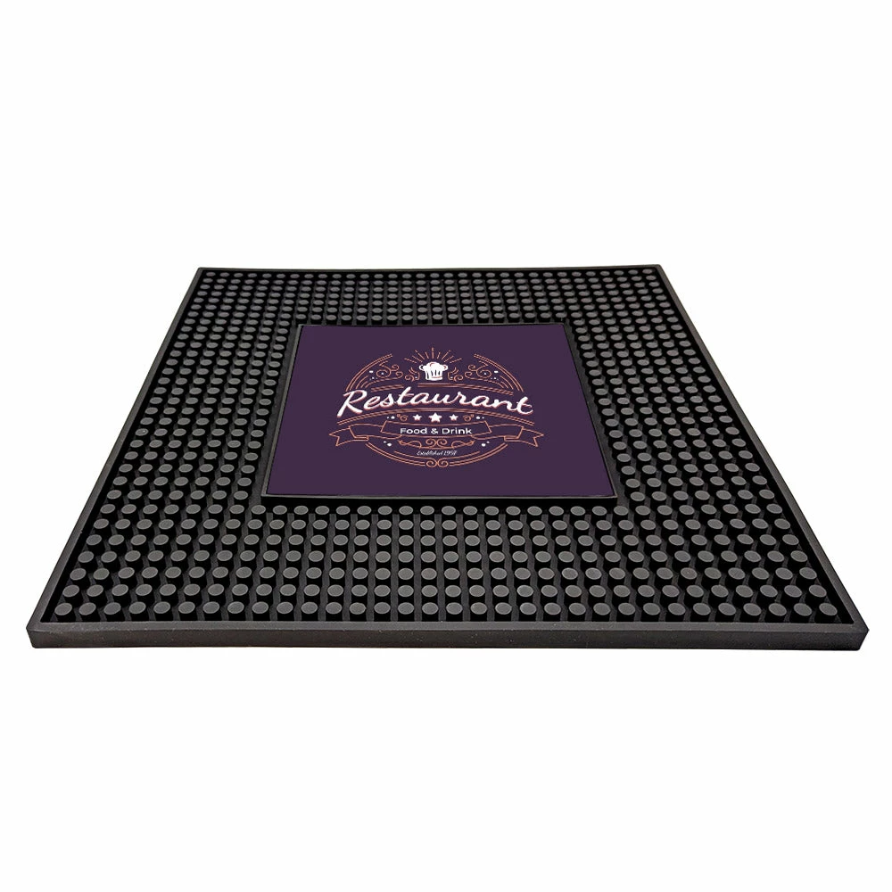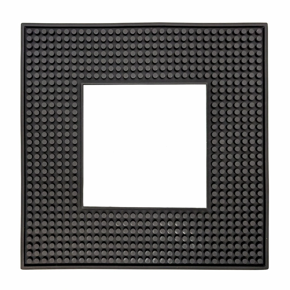Looking for a high quality reusable service mat that is customizable? This Rubber Service Bar Mat is an excellent option! Measuring 12″ x 12″ this rubber mat is designed for high volume bars. The embedded knobs are perfect for collecting any sort of condensation or spillage, keeping your service area dry and clean. Perfect for bars, restaurants and even the home bar enthusiasts. It features a neoprene inner square area that is full color customizable! Upload any logo or designs and have yourself a beautifully branded, high quality service mat.