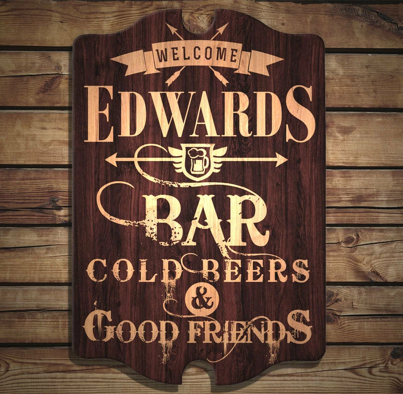 Constructed from a real wood material, this tavern sign makes for a great gift and decor idea. The rustic design is trendy and stylish with its dark brown background tones and light wood text. Handcrafted in the USA, This tavern sign depicts high quality and durable construction perfect for your home bar, rec room, man cave, bar or anywhere else you choose to entertain friends and guests. The best part is, you can completely customize it making it a personalized piece of art.