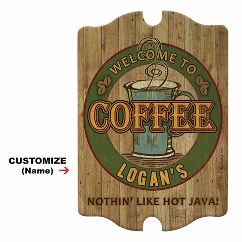 Our custom coffee themed Tavern Bar Sign is made of wood and constructed right here in the USA. You can customize this sign with your name, businesses name or a friends for a more personal gift. So keep those Irish coffees flowing and create an inviting atmosphere for your guests with this custom bar sign.