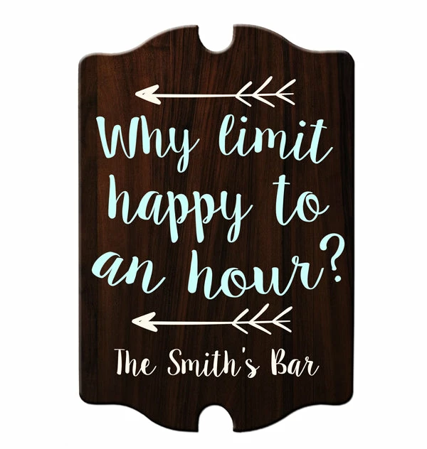 Seriously…why limit happy to an hour? This wood tavern sign features a classic look with a fun modern font that will surely look great hung anywhere. Personalize it with your bar name, family name, or any text you would like. It is made of real wood, and has 2 holes that have been drilled to allow for easy hanging on any wall. This sign also makes a great holiday or house-warming present!