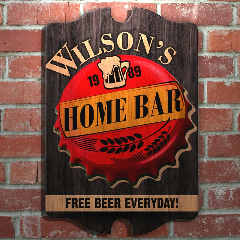 Constructed from a real wood material, this tavern sign makes for a great gift and decor idea. Handcrafted in the USA, it depicts high quality and durable construction perfect for your home bar, rec room, man cave, bar or anywhere else you choose to entertain friends and guests. The best part is, you can completely customize it making it a personalized piece of wall art.