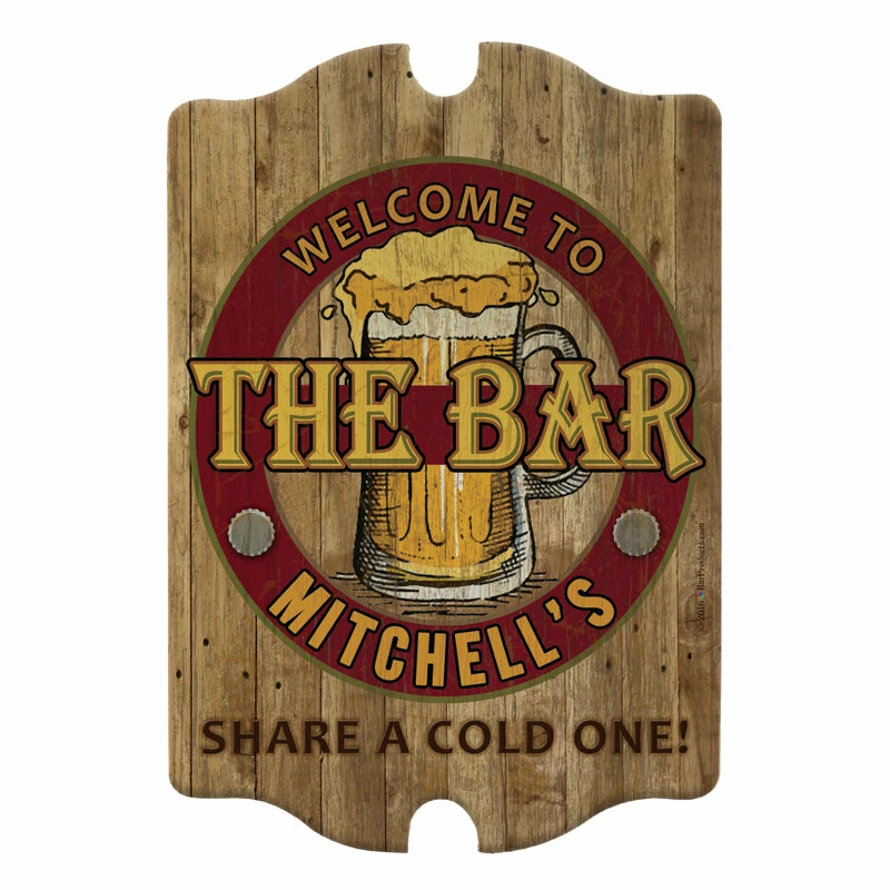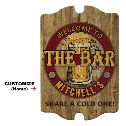 This tavern shaped bar sign is great for hanging in any restaurant, bar or even at home! You can add your name or a friends as a personal touch for the perfect gift. This sign is constructed of real wood material and is handcrafted right here in the USA.