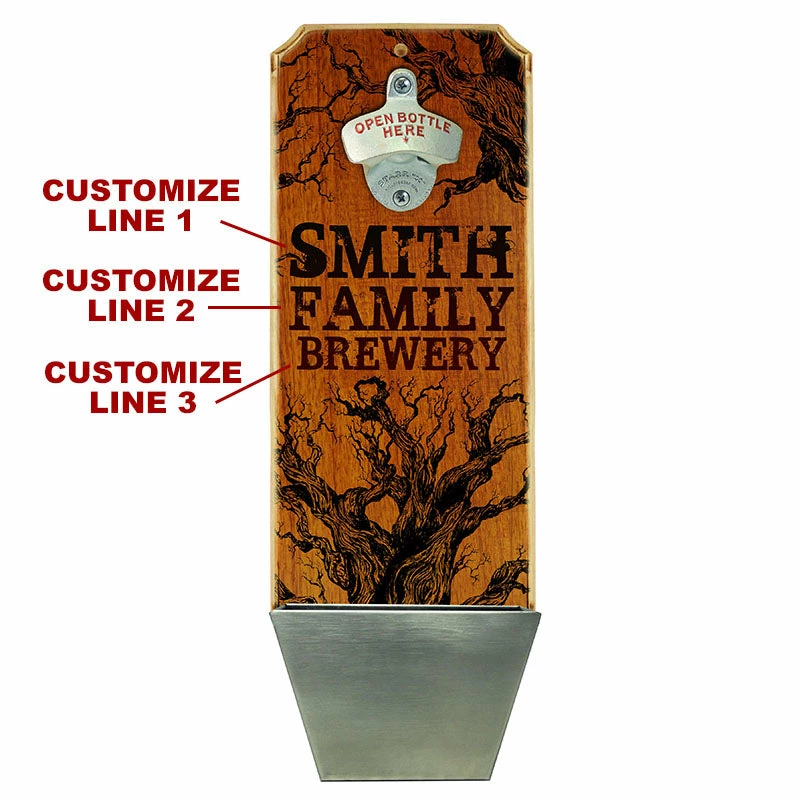 Customize your very own “Family Brewery” themed wall mounted bottle opener! This rustic, trendy design is perfect for those family’s who enjoy entertaining with a few cold beers on the weekends. It offers not only a great utility, but also a great decorating option.