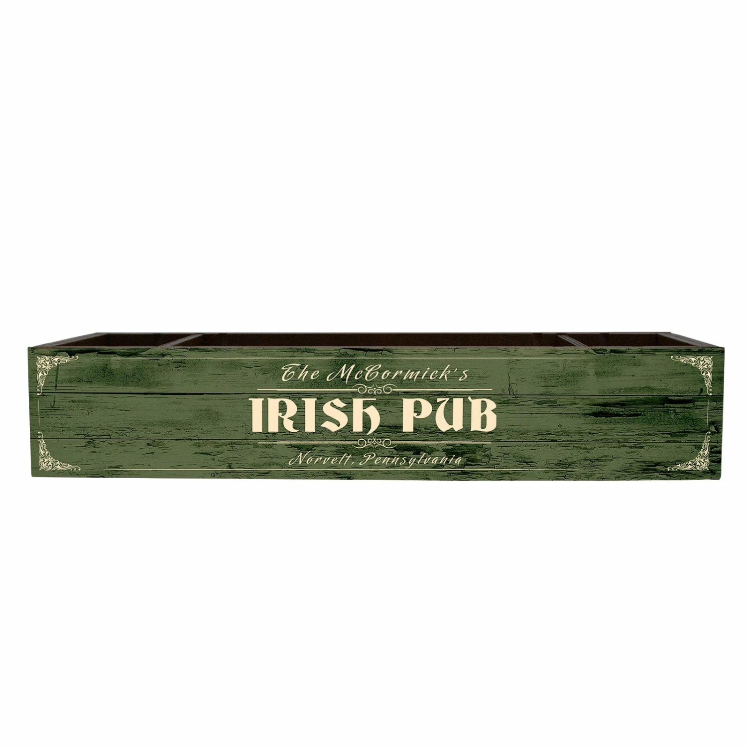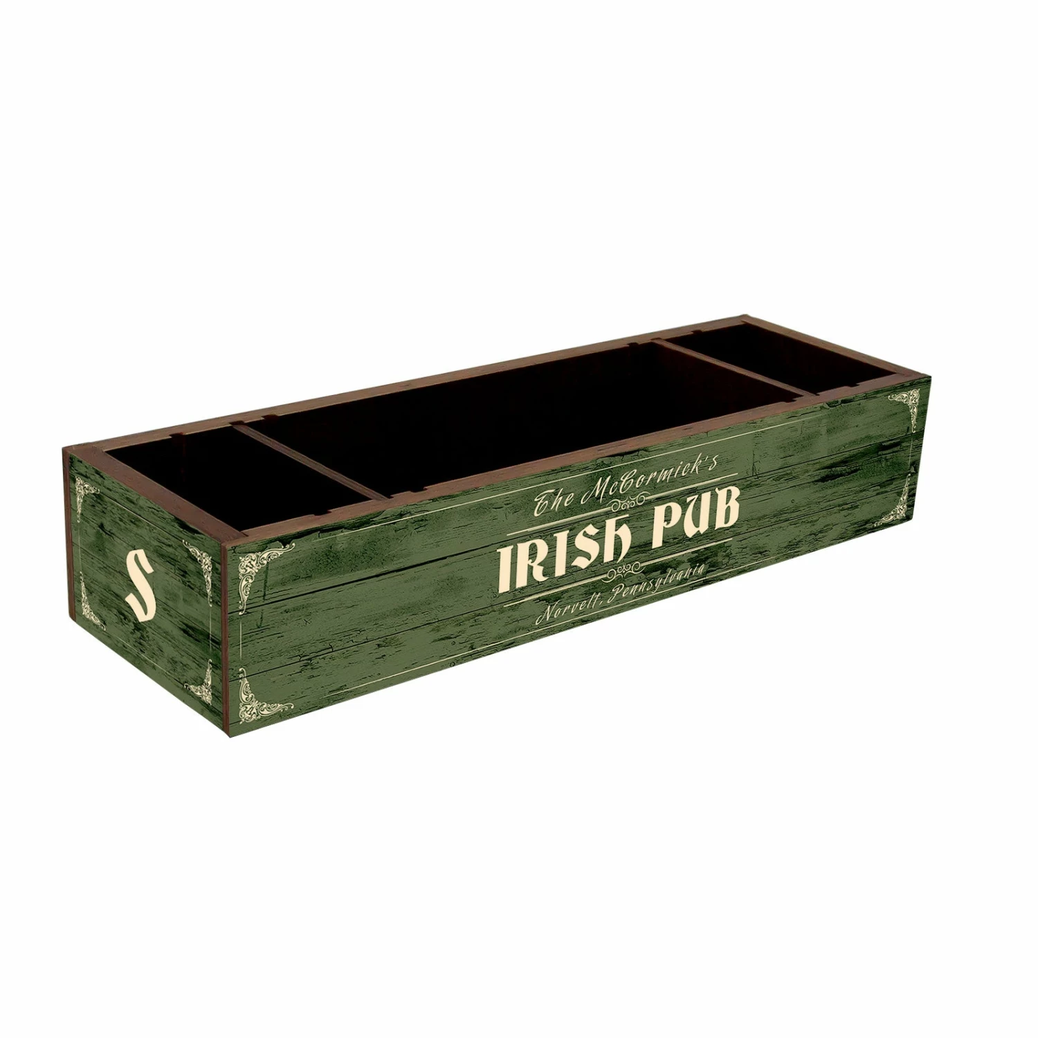 Bring convenience to your kitchen with this handcrafted Wooden Condiment Caddy! This caddy boasts three adjustable compartments for all your toppings and promises long-term efficiency. This custom “Irish Pub” template design is perfect for the cooking enthusiast. What a great gift idea as well!