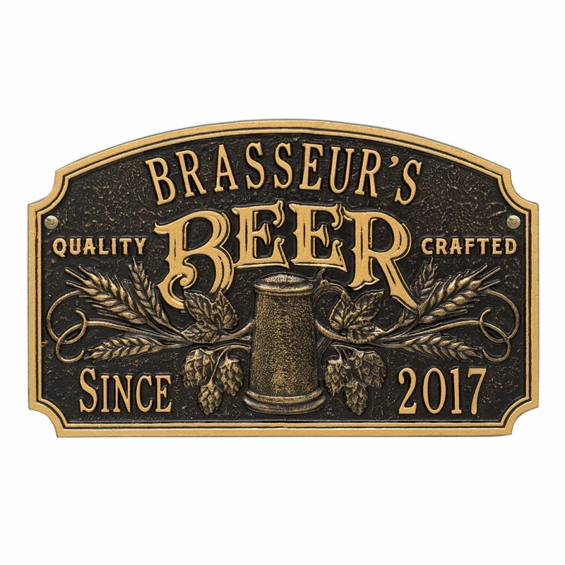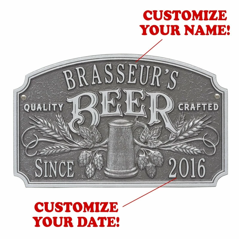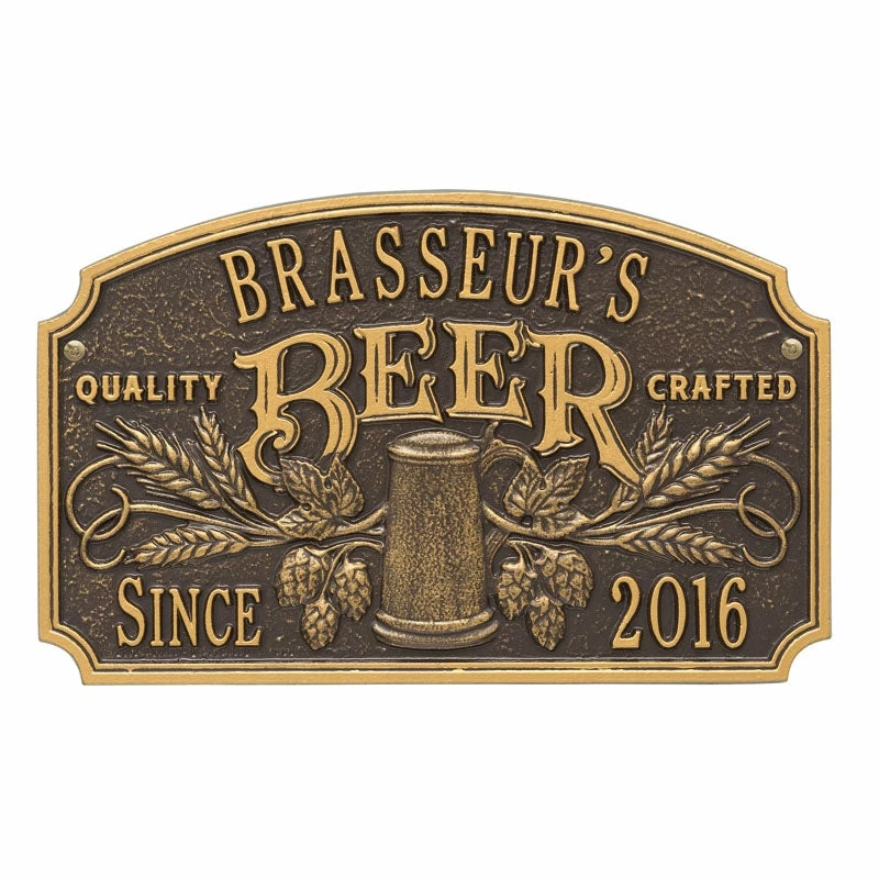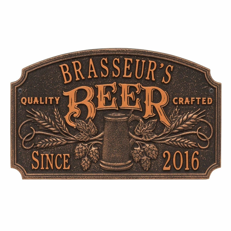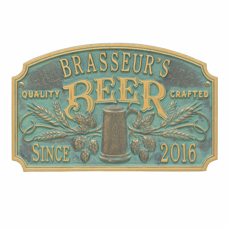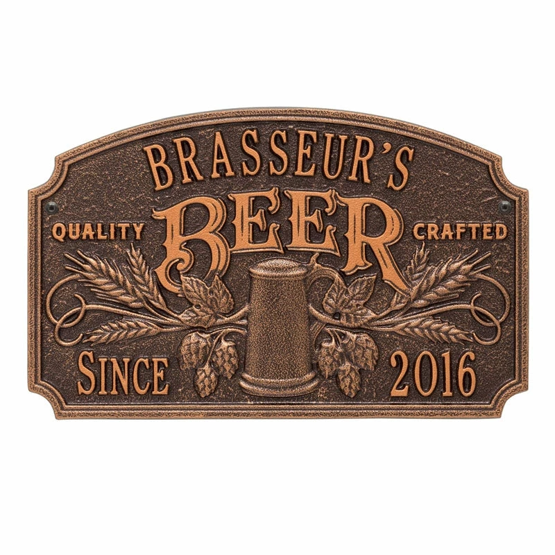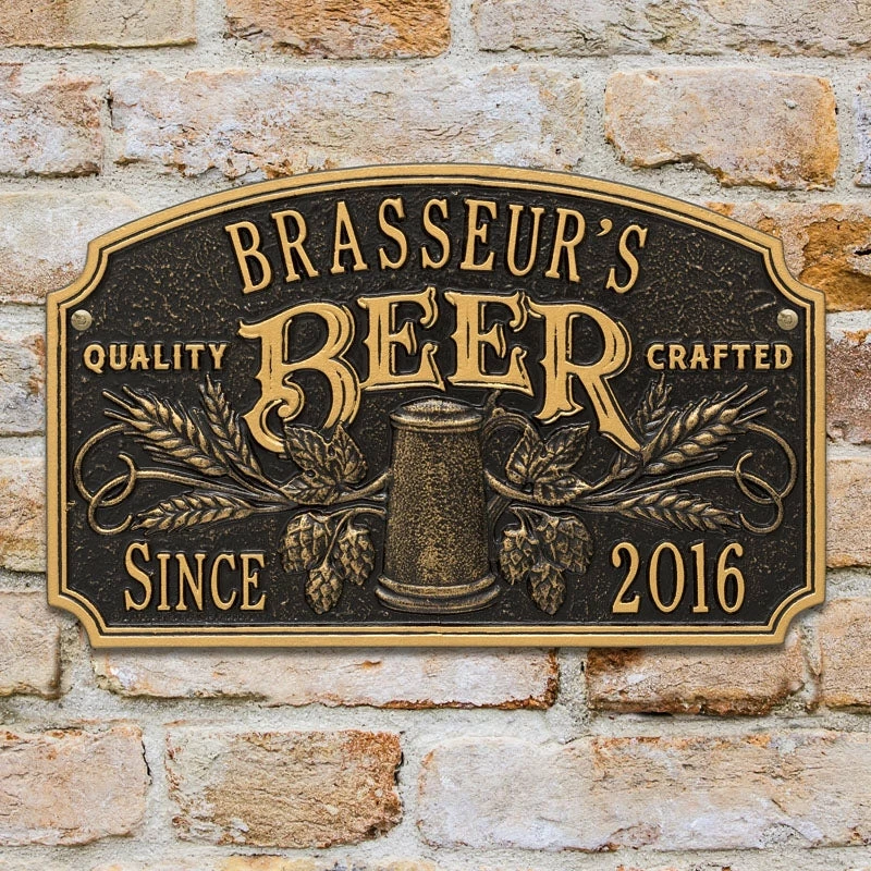 If your home and bar decor defines you and your business, then incorporating one of these personalized cast aluminum plaques will definitely get you some applause. Offered in several color finishes, all of these handmade (in the USA) plaques offer a rustic, antique like style.