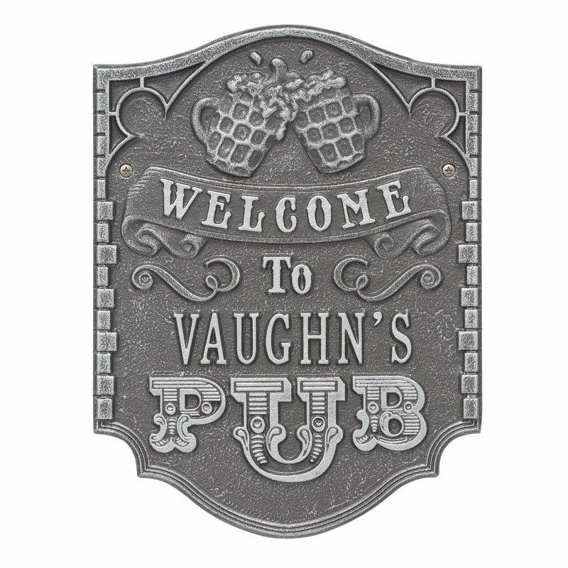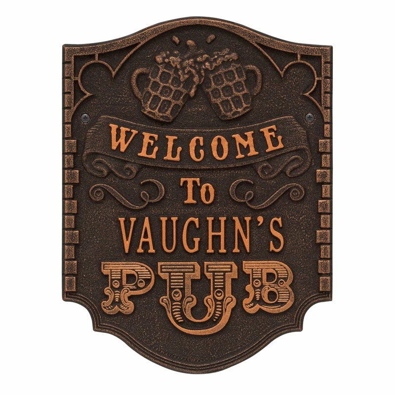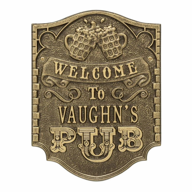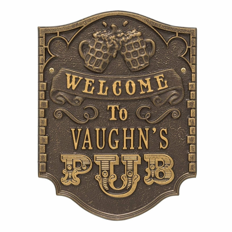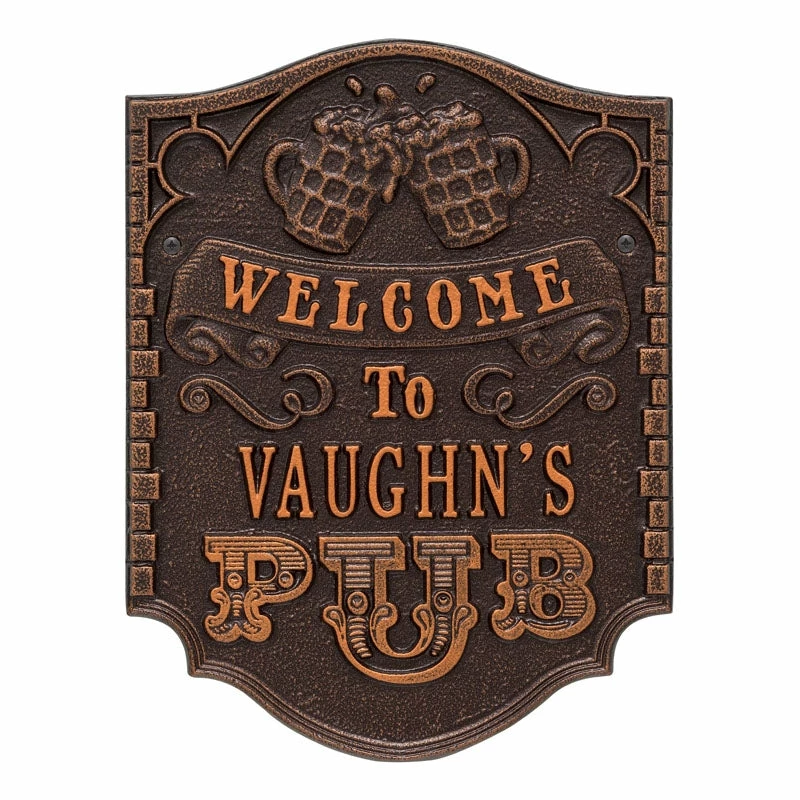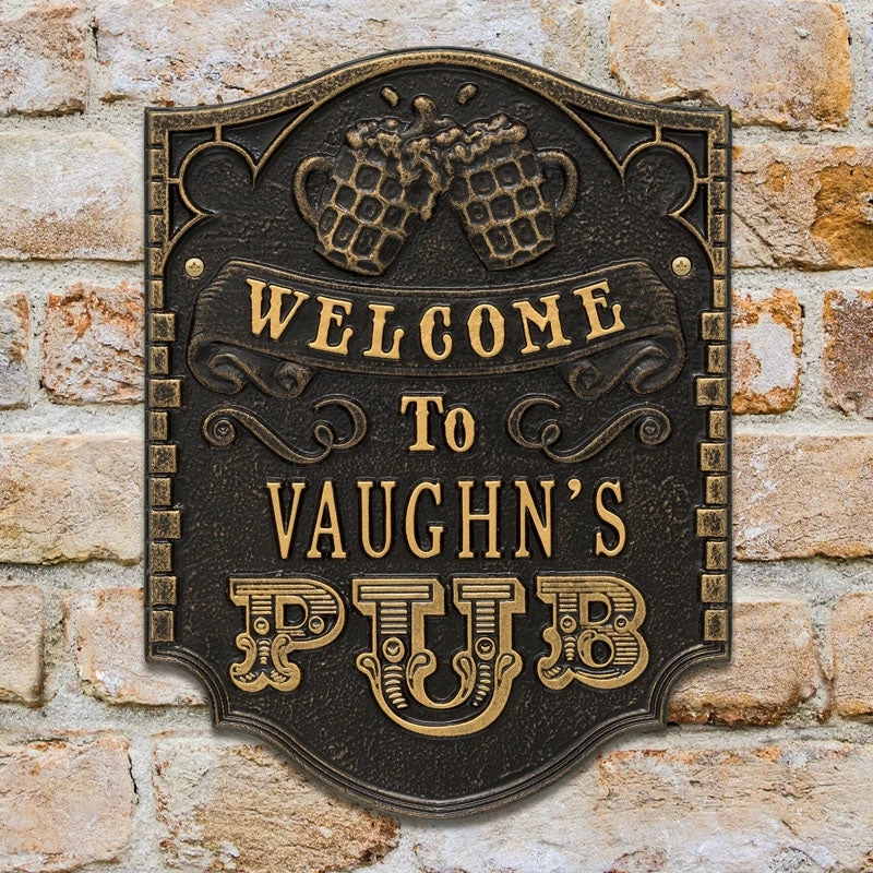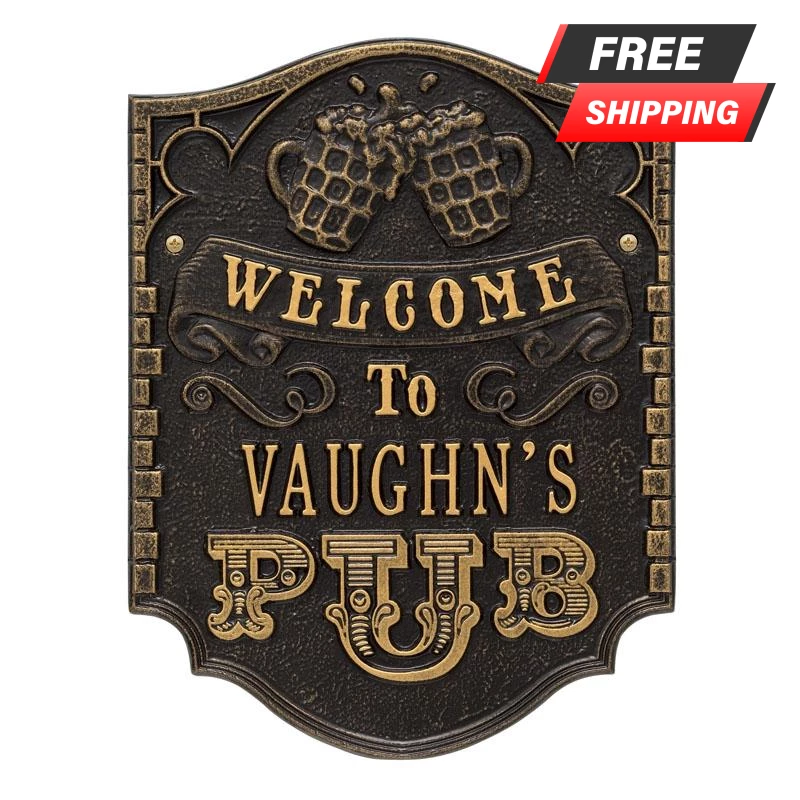 If your home and bar decor defines you and your business, then incorporating one of these personalized cast aluminum plaques will definitely get you some applause. Offered in several color finishes, all of these handmade (in the USA) plaques offer a rustic, antique like style.