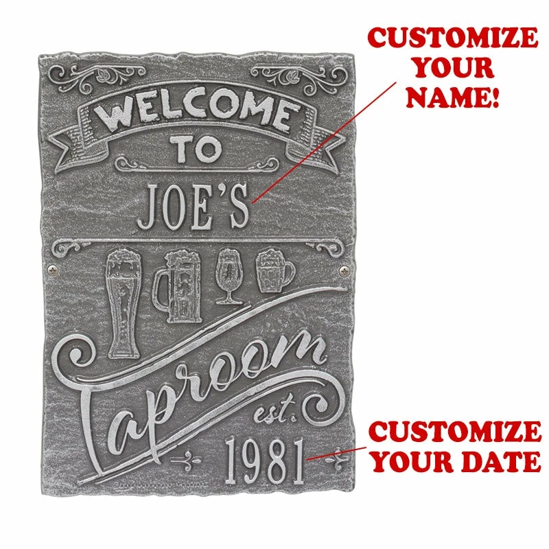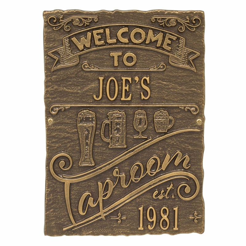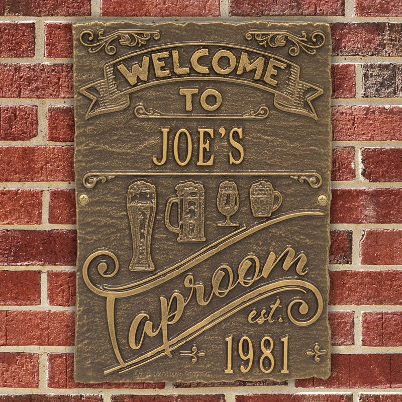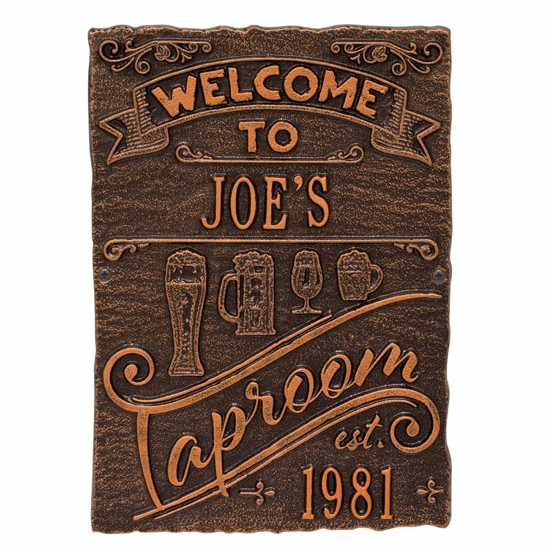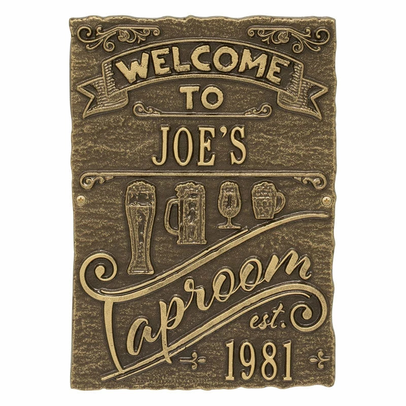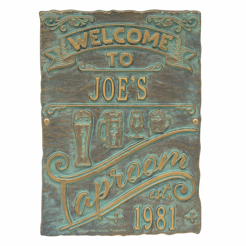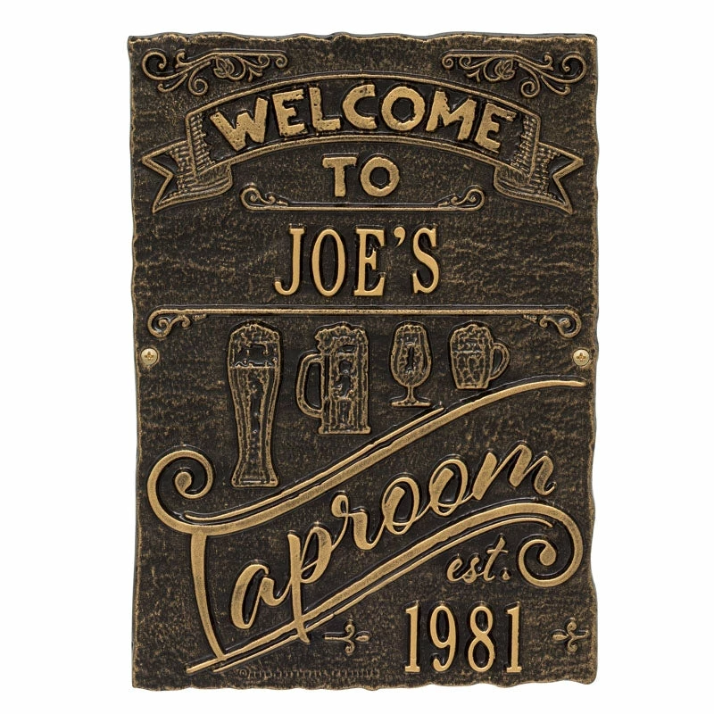 If your home and bar decor defines you and your business, then incorporating one of these personalized cast aluminum plaques will definitely get you some applause. Offered in several color finishes, all of these handmade (in the USA) plaques offer a rustic, antique like style.