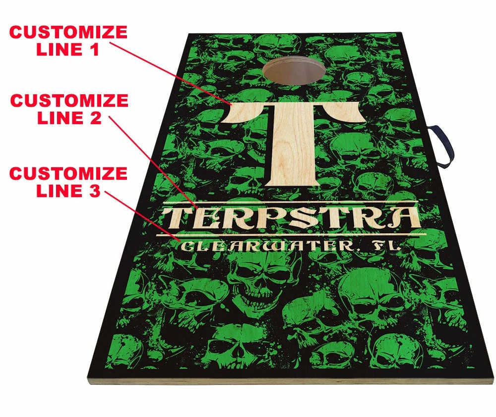 Select from 2 grungy skull color options and bring an exciting edge to your bag tossin’ styleThese boards are sold separately and not as a set.