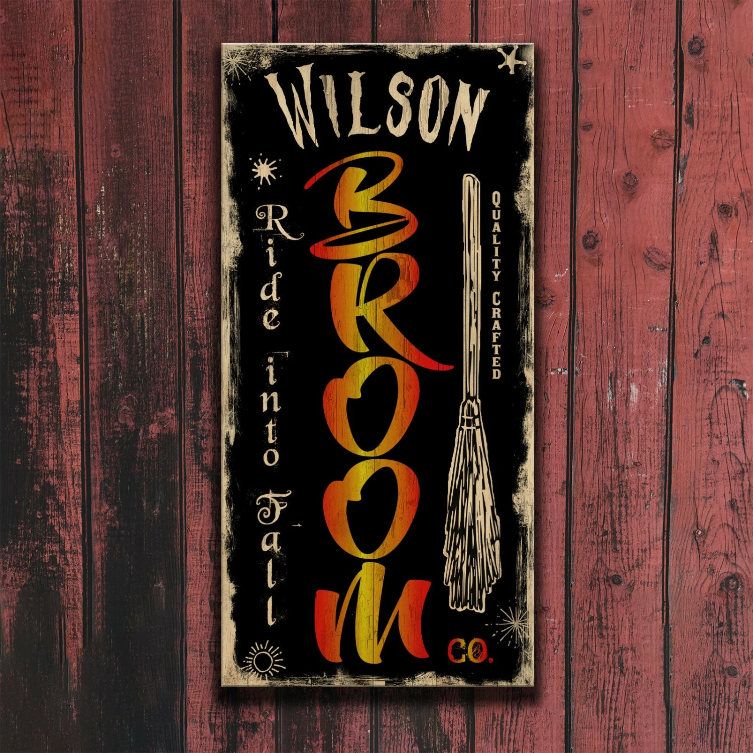 Home and bar decor can certainly set the tone for your guests. They can also make for great conversation pieces! This distressed, Vintage Style “Broom Co” themed Wooden Sign will do just that. The best part is that it is completely customizable. All you need to do is simply type in the required fields with your text and we will custom design this very cool, distressed wooden sign just for you. Think about how excited your friends and family will be when they receive this gift personalized with their own personalization!